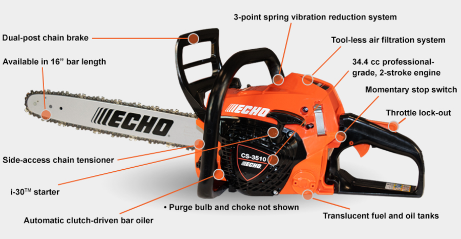 ECHO’s CS-3510 Chainsaw puts awesome power in your hands without weighing you down. It’s ideal for storm clean-up, light firewood cutting, light limb trimming and felling trees up to 28 inches in diameter.