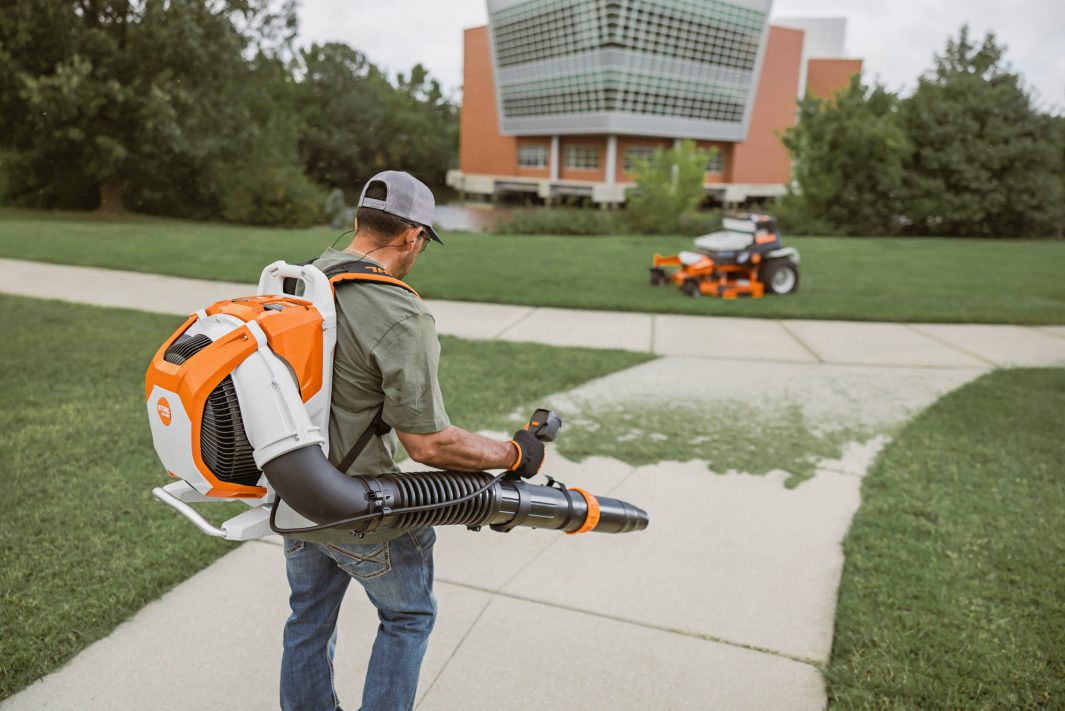 The STIHL BRA 600 Battery Backpack Blower delivers exceptional blowing power for professional large-area cleanup. Producing up to 35 Newtons of blowing force, this high-performance backpack blower efficiently clears heavy, wet leaves, grass clippings, and debris while maintaining consistent power throughout the entire battery charge. Designed for landscaping professionals, municipalities, and contractors, the BRA 600 combines quiet operation with serious performance.
